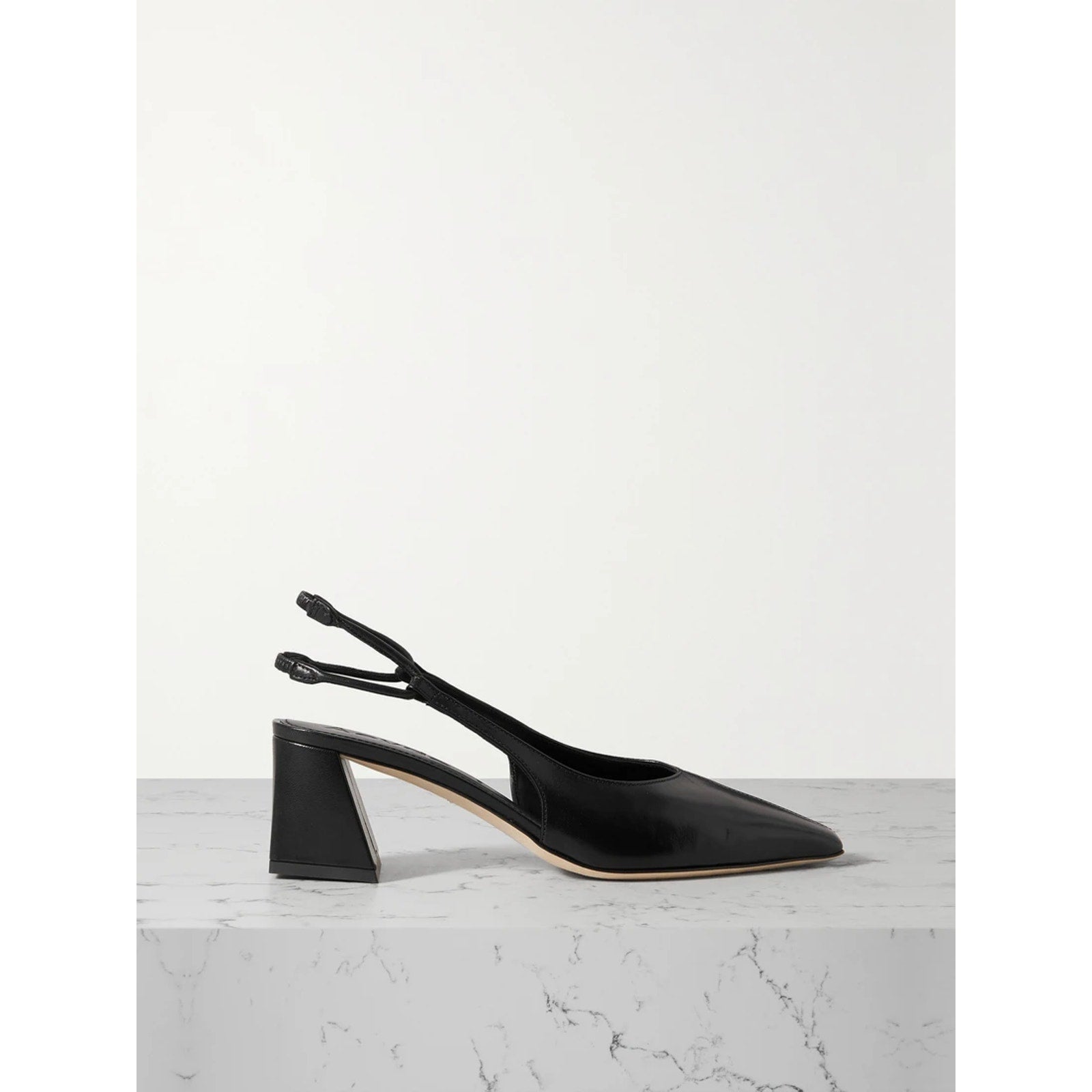 Aeyde 'Polly' Black Leather Slingback Pumps Size 5.5 US / EU 35.5: square toe, slip on, buckled slingback strap, block heel, leather upper, lining and sole.