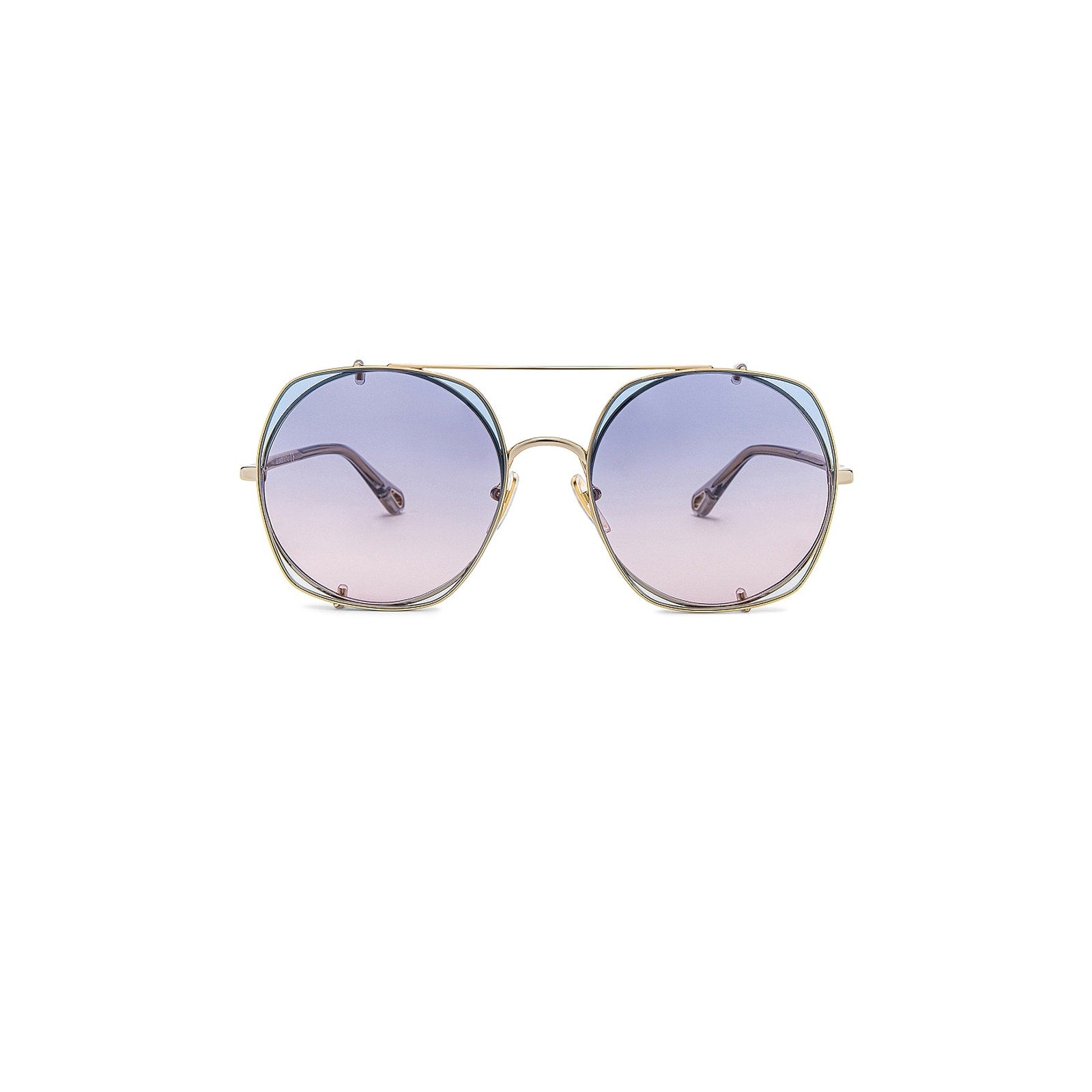 Chlo� 'Demi' Blue Round Gradient With Square Clip On Size OS: round metal base lenses are paired with contrasting square clip-on lenses 56-20-145 in mm.