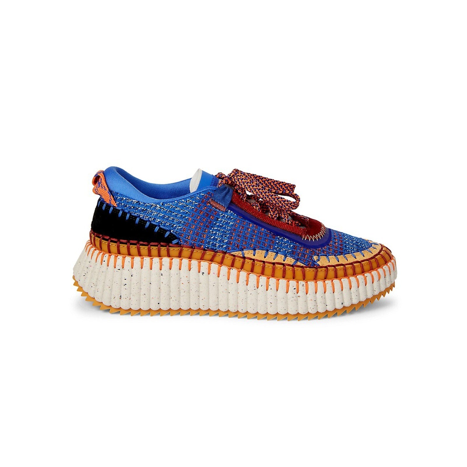 Chlo� 'Nama' Blue Polyester Mixed Media Platform Sneakers Size 10