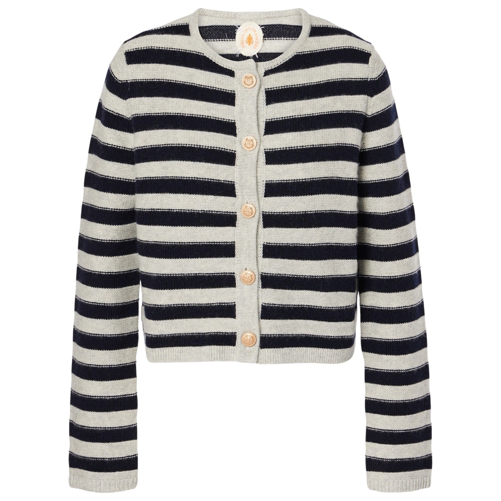 Jardin Des Orangers White Striped Wool And Cashmere Cardigan Size L: buttoned front.
