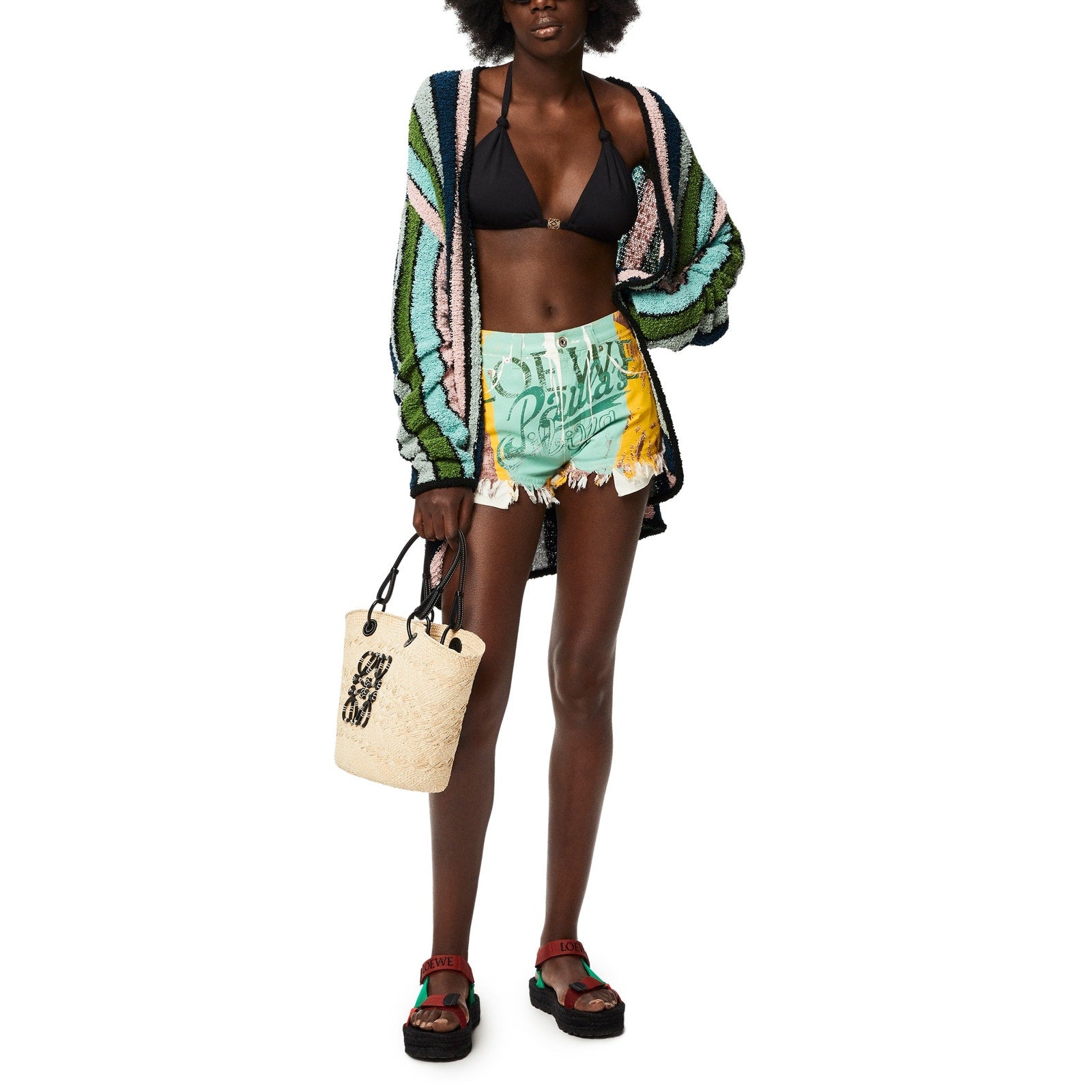 Loewe Stripe Belted Green Cotton Cardigan Size M: stripes with a contrast edge and contrast belt, relaxed fit, embossed loewe paula's ibiza leather patch, belt missing. Missing Item Accessory - Belt missing