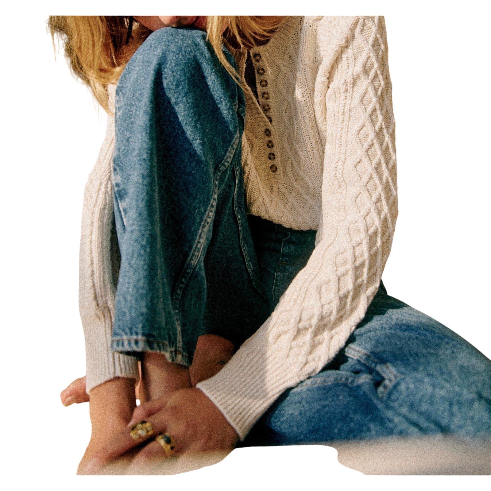 S�zane 'Bree' Beige Cotton Jumper Size S: long sleeve, v-neck.