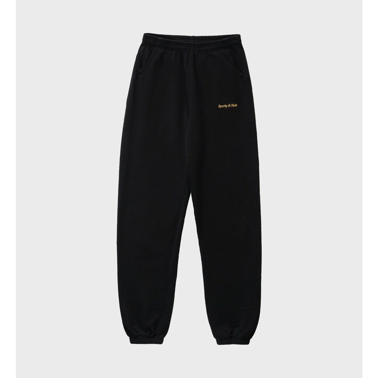Sporty & Rich Classic Logo Black Cotton Sweatpants Size S: elastic waistband with drawstring, shrink free.
