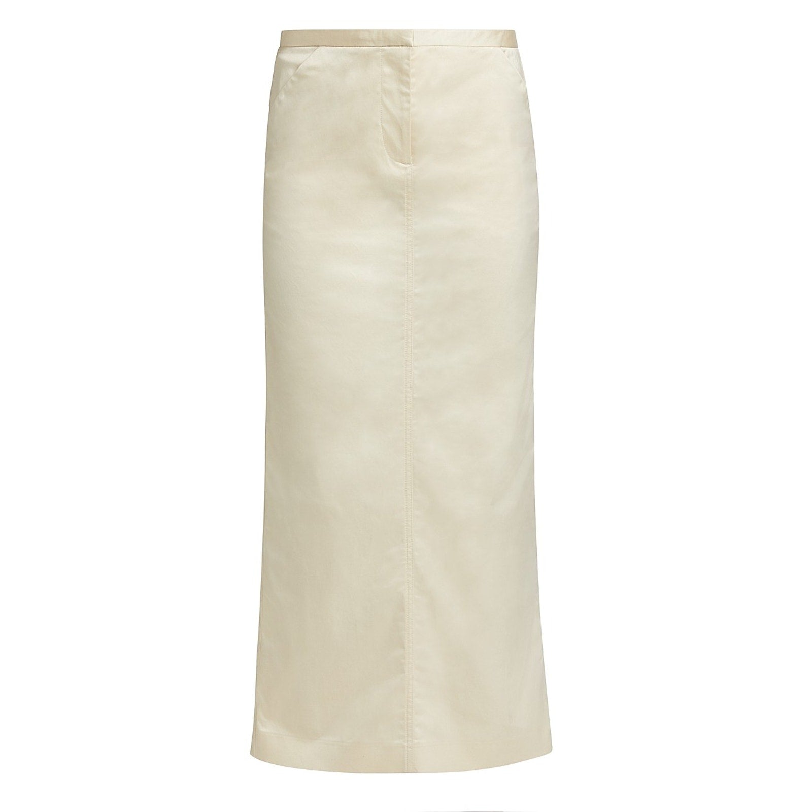 Toteme Beige Cotton-Blend Mid-Rise Maxi Skirt Size 40 (8): side slip pockets, zip fly hook-and-bar closure, measurements: 17 inch width x 36 inch length.