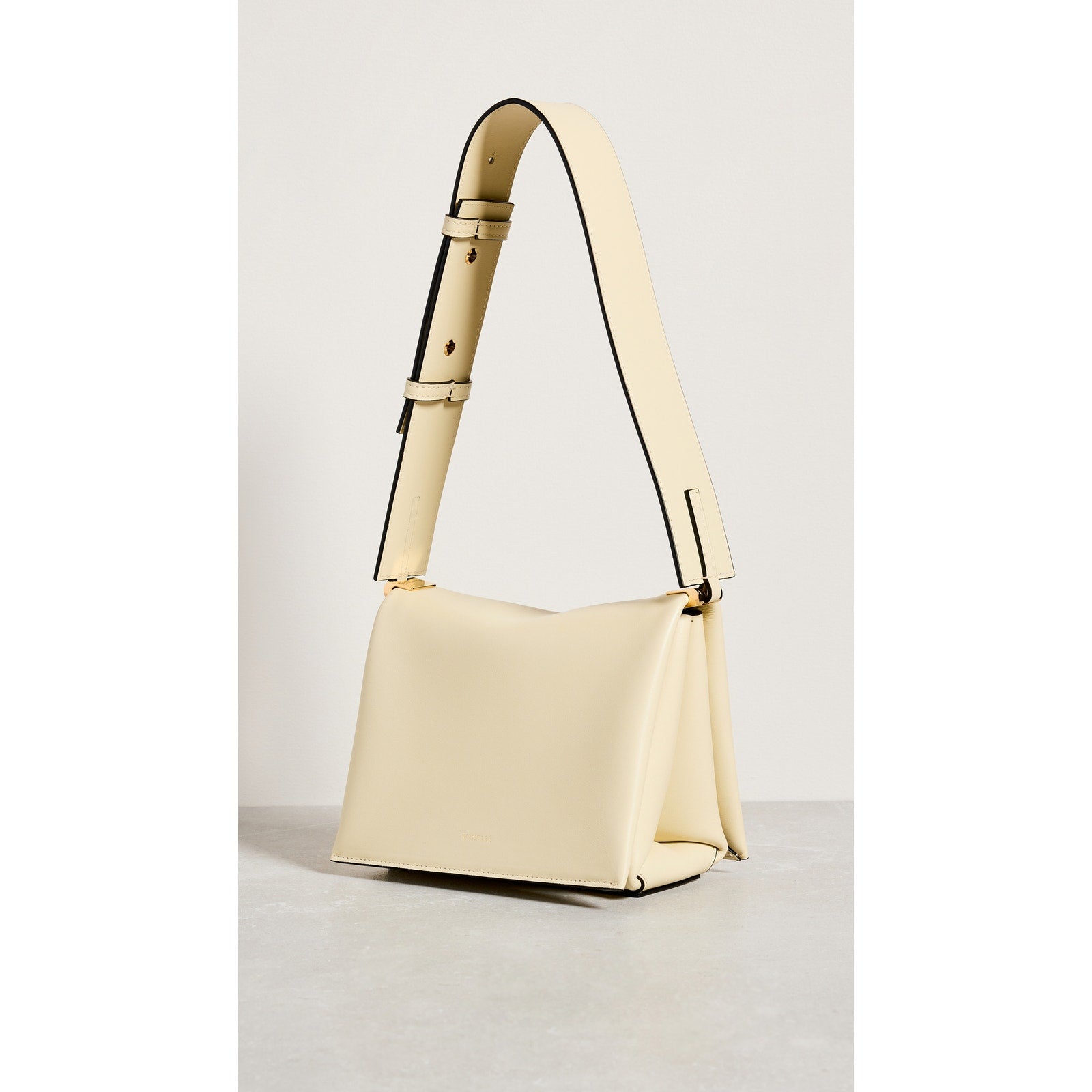 Wandler 'Uma' Yellow Shoulder Box Bag Size OS: smooth calfskin, structured design, gold-tone hardware, fold-over flap with magnetic snap, card slot at interior, adjustable strap, suede lining.